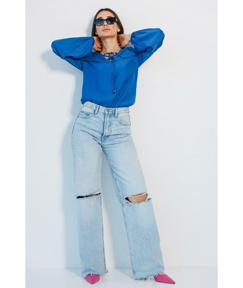 Все оттенки синего по-своему хороши, но блуза цвета электрик – это как глоток свежего воздуха среди серых будней. Не бойся сиять ярче!