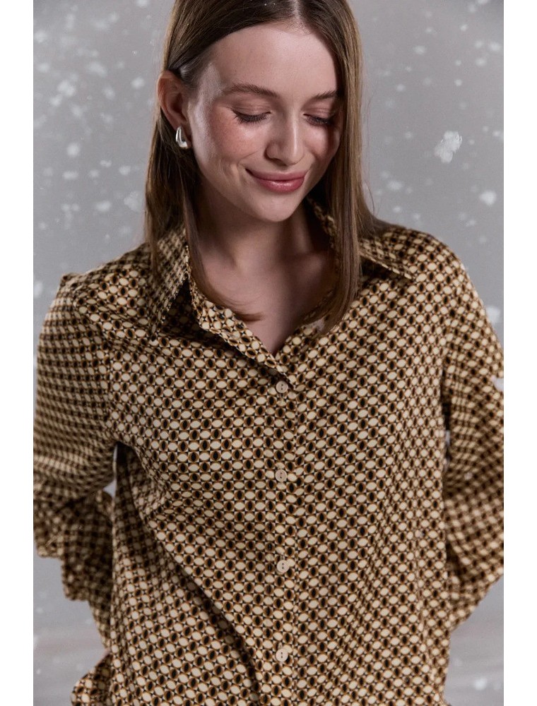 Эта карамельная блуза создана для тех, кто выбирает стильную классику с современным оттенком. Легкая, но плотная ткань обеспечивает комфорт в течение дня, а пуговицы добавляют нотку изысканности. Свободный фасон прекрасно подходит для любого типа фигуры, подчеркивая ваши лучшие черты.