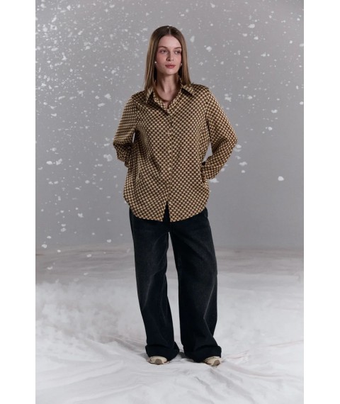 Универсальный карамельный оттенок легко комбинируется с базовыми цветами гардероба: от сдержанного черного до теплых бежевых и ярких акцентов. Добавьте эту блузу к офисному костюму, чтобы освежить строгий образ, или носите с джинсами в стиле casual для легкого и непринужденного вида.