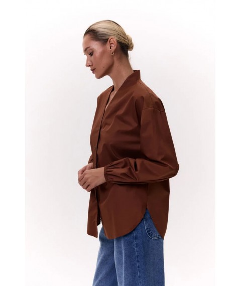 Коричневая рубашка из коттона - это классика, которая никогда не выходит из моды. Ее свободный крой и воротник-стойка создают стильный, но в то же время непринужденный вид. Резинка на манжетах добавляет комфорта и подчеркивает современный стиль, делая эту рубашку незаменимой частью вашего гардероба. Идеальна для создания сдержанных и стильных образов.