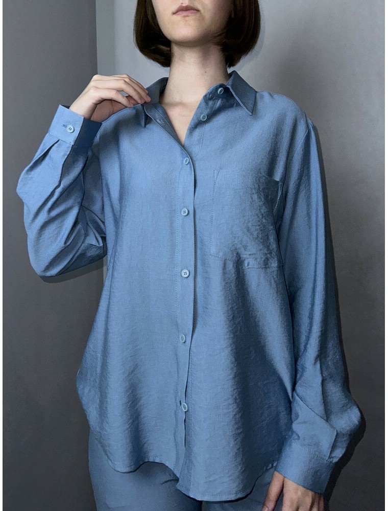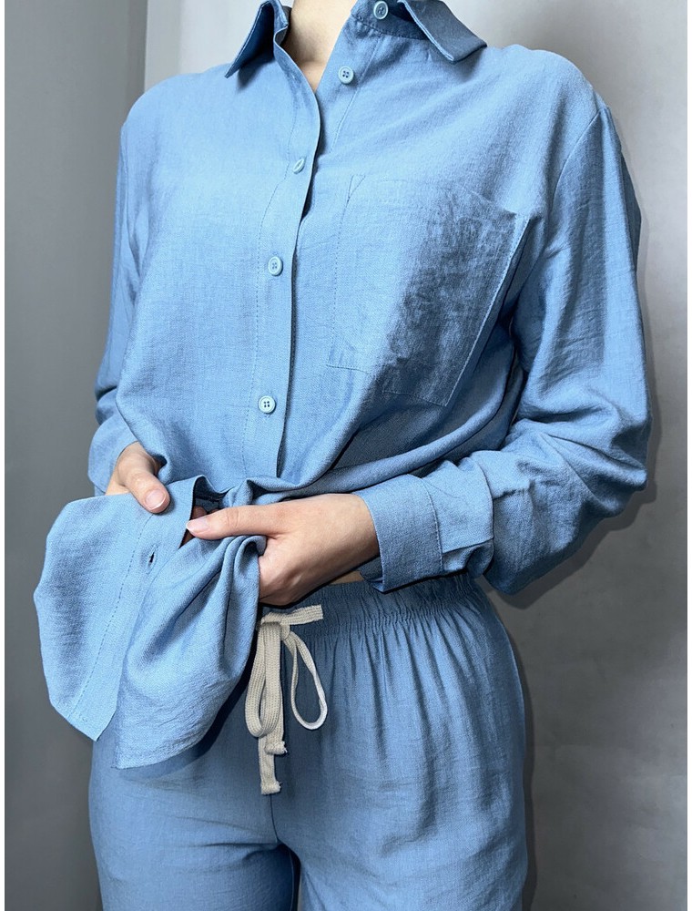 Рубашка женская льняная базовая серо-голубая AZURI MKAZ6452-4