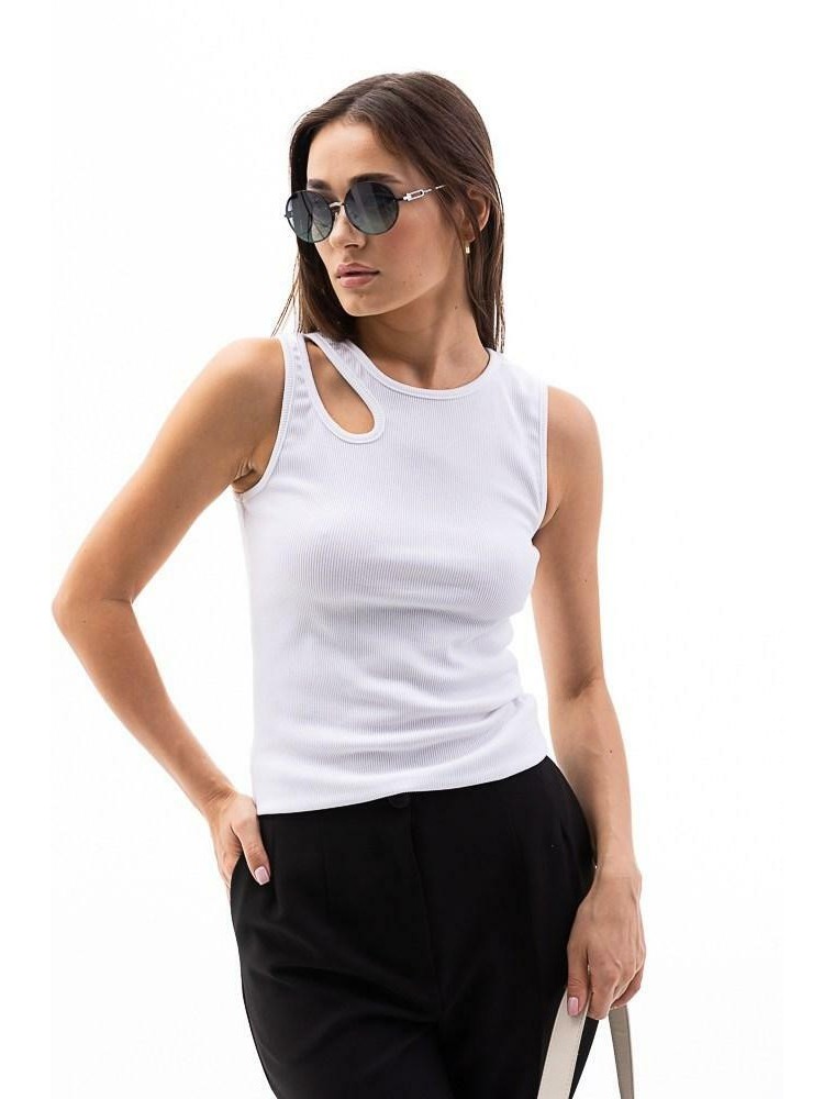 Майка женская в рубчик трикотажная с вырезом белая Modna KAZKA MKAR32763-2 44
