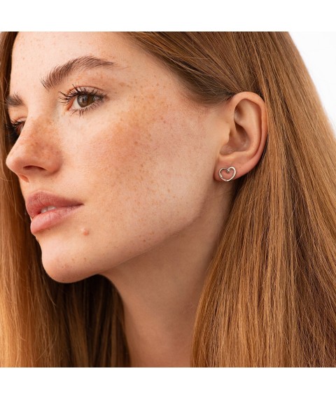 Серьги - пусеты "Сердечки" в серебре 7251 Онікс