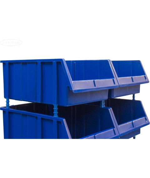 Use suitable containers to store tools and parts. Plastic racks prevent friction of metal elements, which accelerates the wear of tools. The designs help improve sorting and warehousing without taking up much space. Advantages of plastic shelving Single-sided shelving is a design used for storing small-piece products. The rack consists of 12 plastic cells, two in a row, fixed together with connectors. The design helps to economically manage free space, suggesting installation under the wall. The connectors tightly secure plastic containers, preventing loosening or deformation under increased loads. The lightness of the materials reduces the overall weight of the structure and is useful when transporting racks. The racks are made from virgin polypropylene with increased strength. Plastic is resistant to corrosion and does not emit toxic fumes that pose a threat to human health. Polypropylene surfaces are non-porous, preventing the accumulation of dirt. The color of the material is preserved during use and does not fade under the influence of sunlight. Plastic can be used at an ambient temperature of -20 – +40 °C, washed with hot water using household chemicals. UHL-MASH offers to buy one-sided plastic shelving at an affordable price. On the pages of the catalog you can familiarize yourself with the plant's products. Before hitting the shelf, products undergo quality control and compliance with regulatory requirements. The products presented in the catalog have a warranty period from the manufacturer. The exhibition hall is located in Kyiv. To place an order, you should contact the manager by phone, or leave a request on the website. The set includes: Container RA 540 - 4 pcs; container RA 550 - 8 pcs; connectors - 40 pcs.
