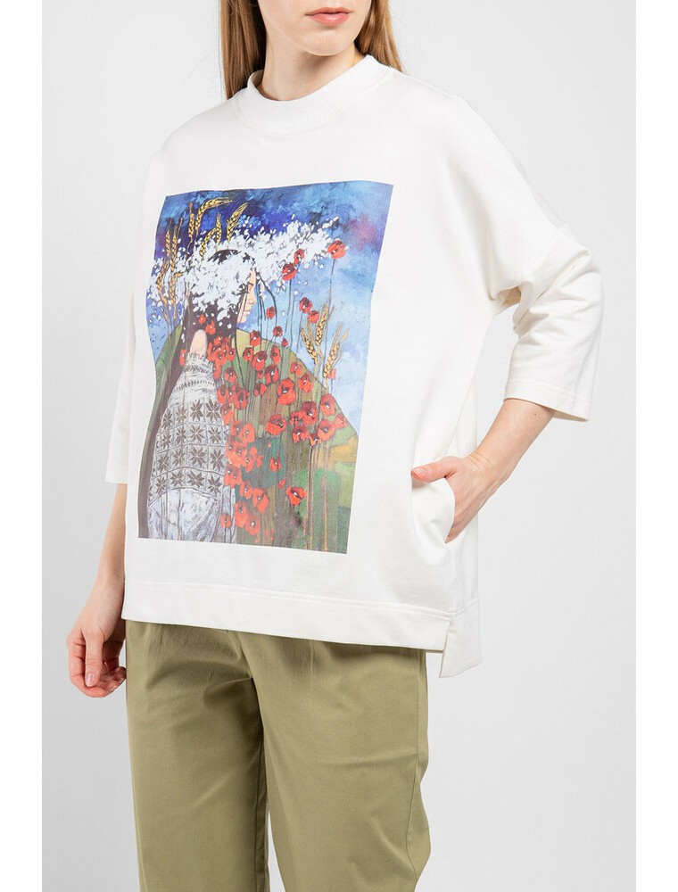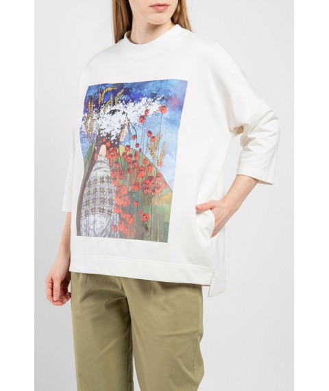 Свитшот женский в патриотический принт молочный MKAS300401-01