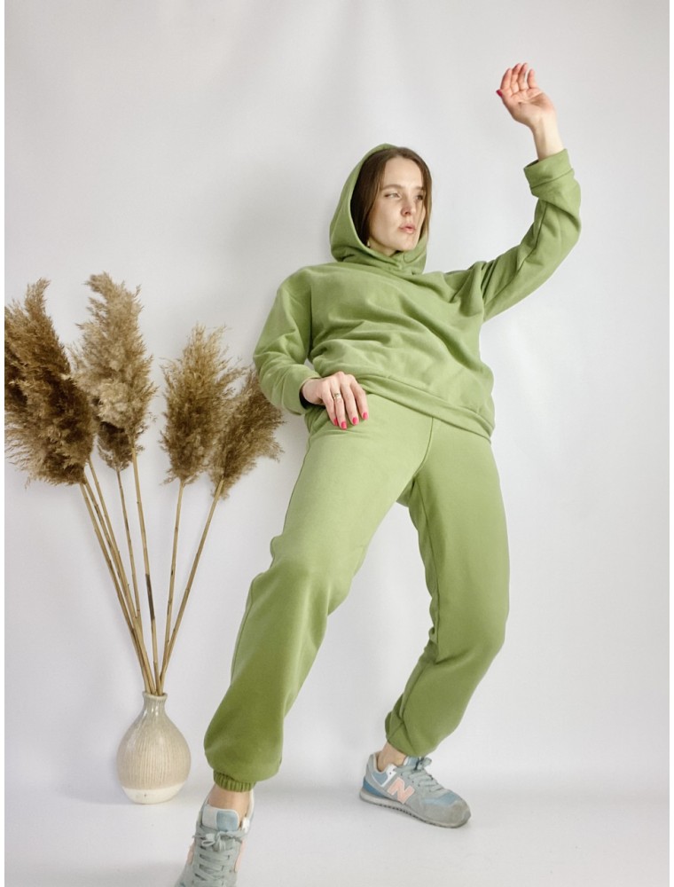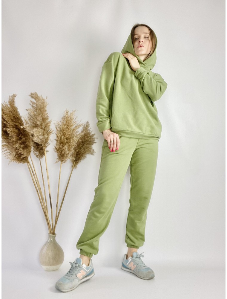 Women's tracksuit with oversized hooded sweater and elasticated joggers green in sport chic style without logos or patches. You can buy a high-quality and fashionable ANNASUN women's suit in stores in Kiev on the Darnitsa metro station and the Minska metro station. And also, order a beautiful women's suit with home delivery in Ukraine or to any country in the world. Such a sports suit made of natural cotton, which does not roll down and does not lose color after washing. The bright saturated color of the women's suit will delight you for more than one season. Order today - and tomorrow you will already be wearing your new tracksuit everywhere and always. ANNASUN - ALWAYS WITH YOU! The most laconic lines of this urban costume will emphasize femininity and freedom. And the natural composition will complement the rhythmic day with comfort. The high waist in the pants emphasizes the waist, thanks to the wide, qualitatively stitched, elastic band. And the pockets in them are a nice bonus for the hands. The hoodie has deep side pockets and no drawstring. Therefore, it is easy to combine such a jacket with trousers, as well as with a skirt or dress. Such a casual suit is beautiful for its versatility and compatibility with any clothes and shoes (except evening). Material: double thread cotton. Composition: 95% cotton, 5% elastane. Care: machine wash inside out at 30 degrees and minimum spin. Measurements for size SM: Hoodie XS-S (loose): Bust: 113cm Waist:112cm Hip:102cm Shoulder:21.5cm Sleeve:51.5cm Product length:66cm Hood height:39.5cm. Pants to choose from S or M. This jacket is easy to combine with both trousers and a skirt or dress. Such a casual suit is beautiful for its versatility and compatibility with any clothes and shoes (except evening). Material: double thread cotton. Composition: 95% cotton, 5% elastane. Care: machine wash inside out at 30 degrees and minimum spin. Measurements for size SM: Hoodie XS-S (loose): Bust: 113cm Waist:112cm Hip:102cm Shoulder:21.5cm Sleeve:51.5cm Product length:66cm Hood height:39.5cm. Pants to choose from S or M. This jacket is easy to combine with both trousers and a skirt or dress. Such a casual suit is beautiful for its versatility and compatibility with any clothes and shoes (except evening). Material: double thread cotton. Composition: 95% cotton, 5% elastane. Care: machine wash inside out at 30 degrees and minimum spin. Measurements for size SM: Hoodie XS-S (loose): Bust: 113cm Waist:112cm Hip:102cm Shoulder:21.5cm Sleeve:51.5cm Product length:66cm Hood height:39.5cm. Pants to choose from S or M. Hoodie XS-S (loose): Bust: 113cm Waist:112cm Hip:102cm Shoulder:21.5cm Sleeve length:51.5cm Product length:66cm Hood height:39.5cm. Pants to choose from S or M. Hoodie XS-S (loose): Bust: 113cm Waist:112cm Hip:102cm Shoulder:21.5cm Sleeve length:51.5cm Product length:66cm Hood height:39.5cm. Pants to choose from S or M.