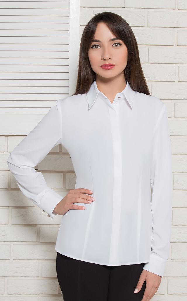Подчеркнуть женственность и изящность поможет эта легкая белая женская блуза. Модель по фигуре из нежно струящегося материала визуально обыгрывает фигуру и стройнит ее. Комбинируйте модель с классическими юбками и брюками и получайте стильные деловые образы . Такая блуза должна быть в каждом гардеробе. Без базовых вещей не обходится ни один образ.