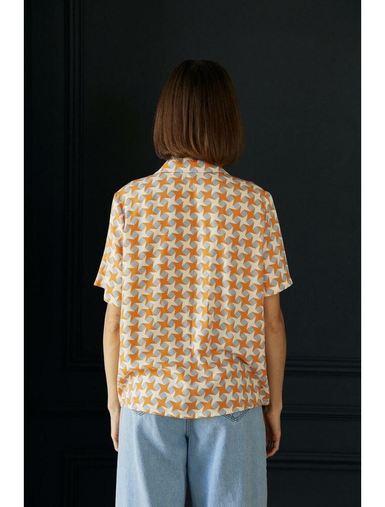 Блузка женская на пуговице оранжевая с короткими рукавами AZURI MKAZ6683-1