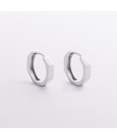 Серьги - кольца "Геометрия" в белом золоте с09365 Онікс