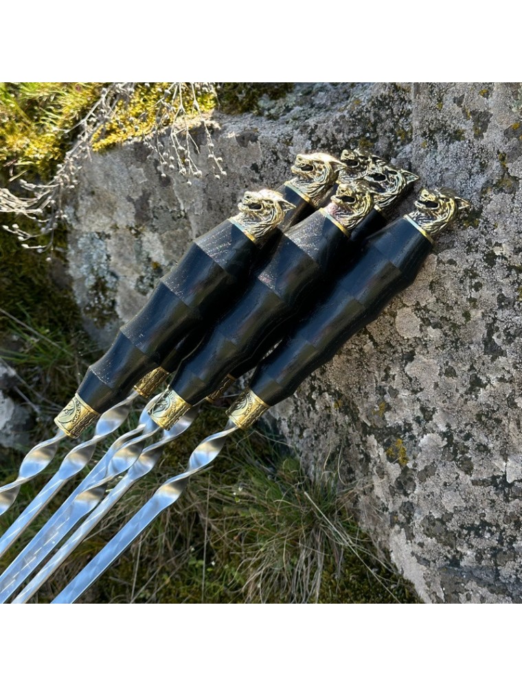 Шампур очень удобный и практичный в использовании. Ручка изготовлена из натурального дерева и покрыта несколькими слоями качественного лака, что сохраняет ее от царапин и потертостей. Форма ручки фигурная, хорошо ложится в руку. Имеет не только красивый дизайн, но и очень практичная в использовании.
