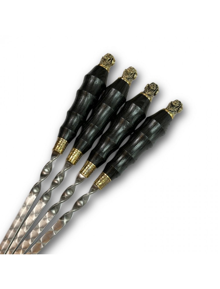 Шампур очень удобный и практичный в использовании. Ручка изготовлена из натурального дерева и покрыта несколькими слоями качественного лака, что сохраняет ее от царапин и потертостей. Форма ручки фигурная, хорошо ложится в руку. Имеет не только красивый дизайн, но и очень практичная в использовании.