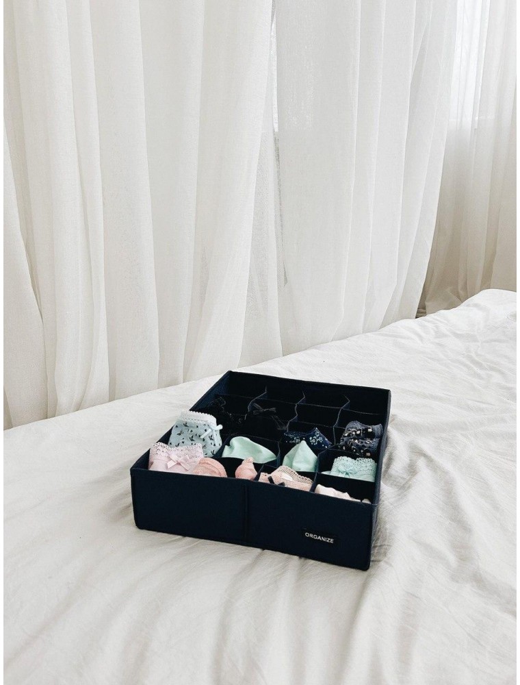 Зроблено в Україні Щільний органайзер для зберігання трусиків та шкарпеток. Практичний темний колір підійде як для чоловіків, так і для жінок. Не линяє. Розмір: 35*28*8 см