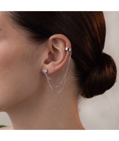 Earring - cuff "Trinity" in white gold with chains (cubic zirconia) s08020 Onyx