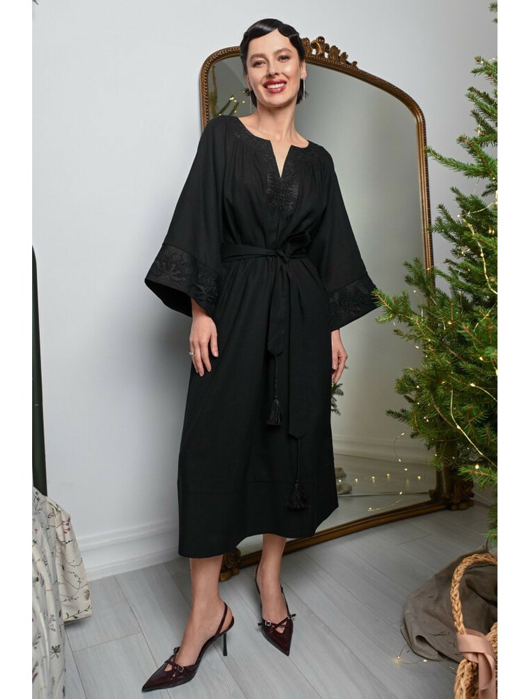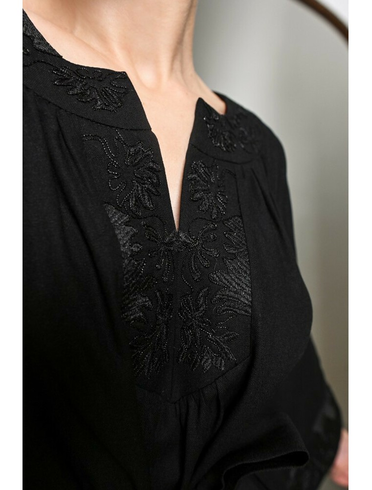 Вышитая женская вышиванка свободного кроя чёрная MKSMV125/901 SEAM