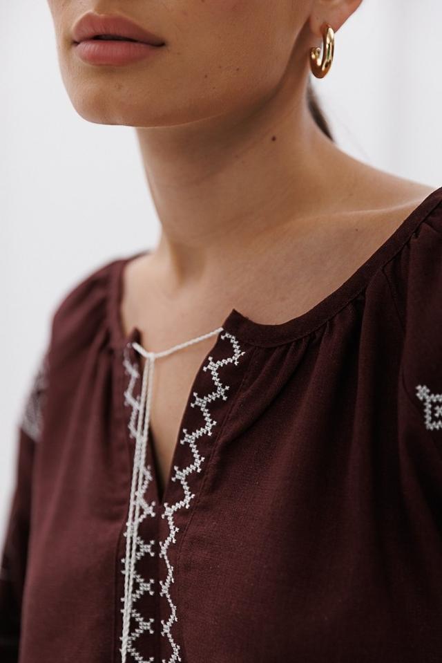 В вышиванке шоколадного цвета хорошее настроение и уверенность гарантированы. В этой модели прекрасно сочетаются тренды и комфорт.