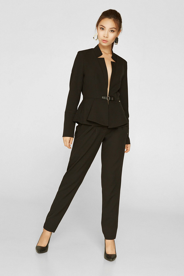 Идеальные базовые брюки со складками на высокой посадке. Эта модель выполнена из очень качественной ткани - очень приятная к телу и хорошо тянется, убирая при этом проблемные зоны. Высокая посадка акцентирует талию. Изделие дополнено боковыми карманами. Базовый чёрный цвет - всегда хорошее решение для гардероба.