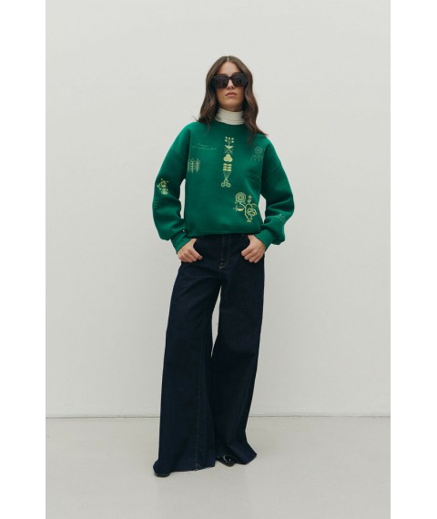 Женский свитшот оберег с вышивкой зеленый RICA MARE MKRM4225-2