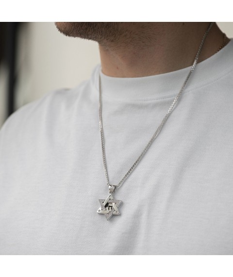 Золотий кулон "Зірка Давида. Символ CHAI" (фіаніти)